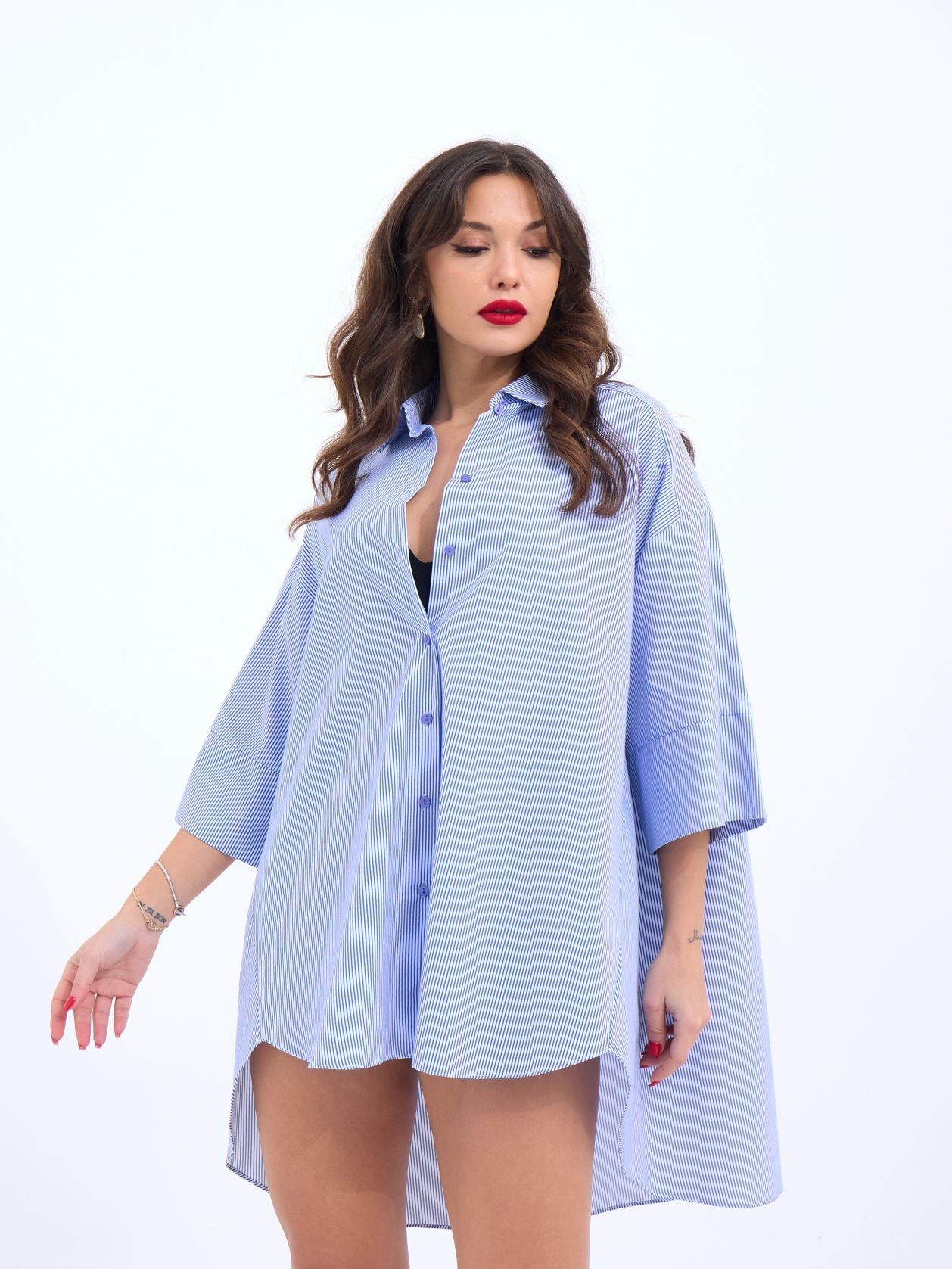 4328 GÖMLEK-MAVİ BEYAZ ÇİZGİLİ