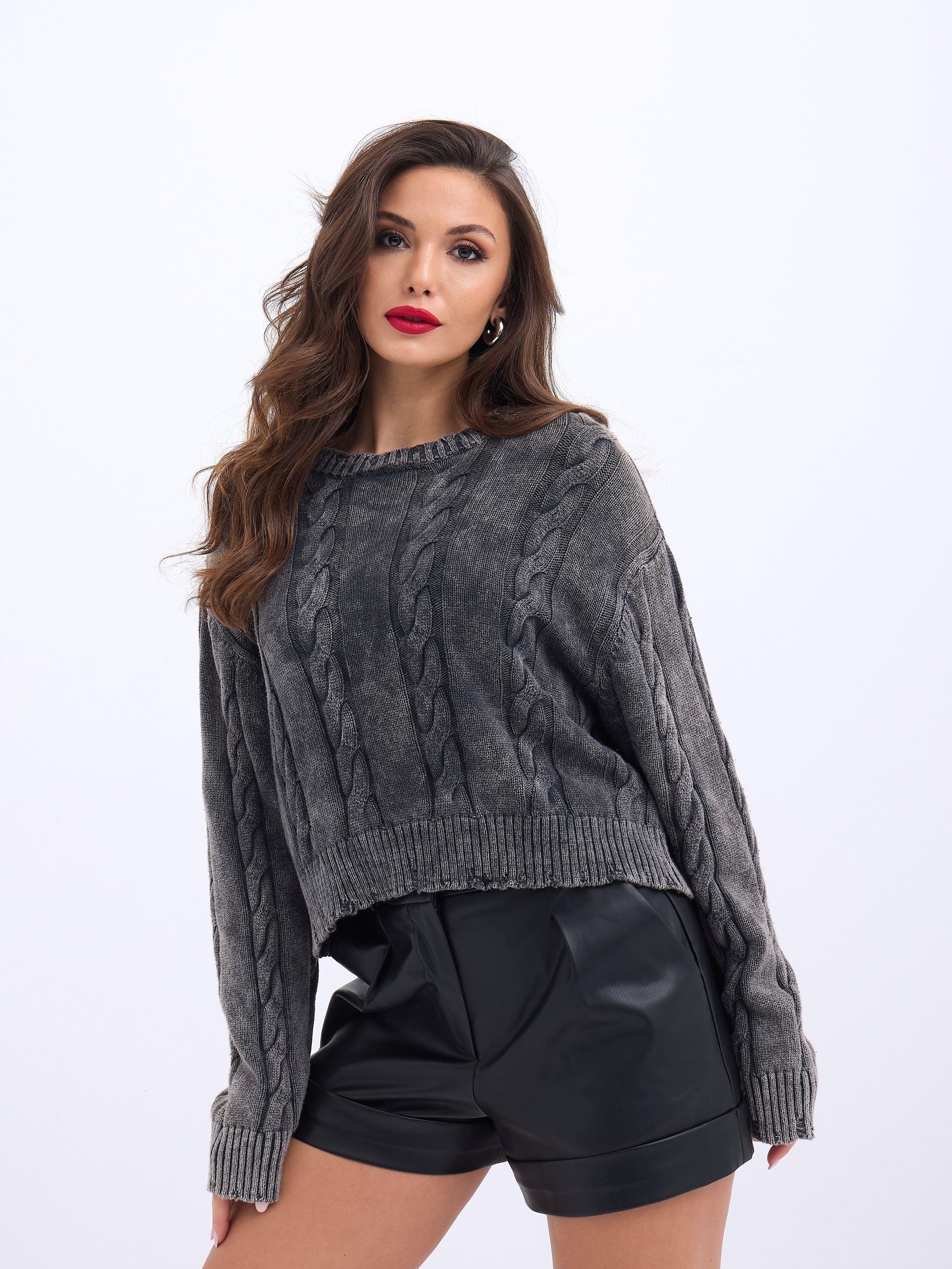 43331 TRİKO SAÇ ÖRGÜ KAZAK-ANTRASİT