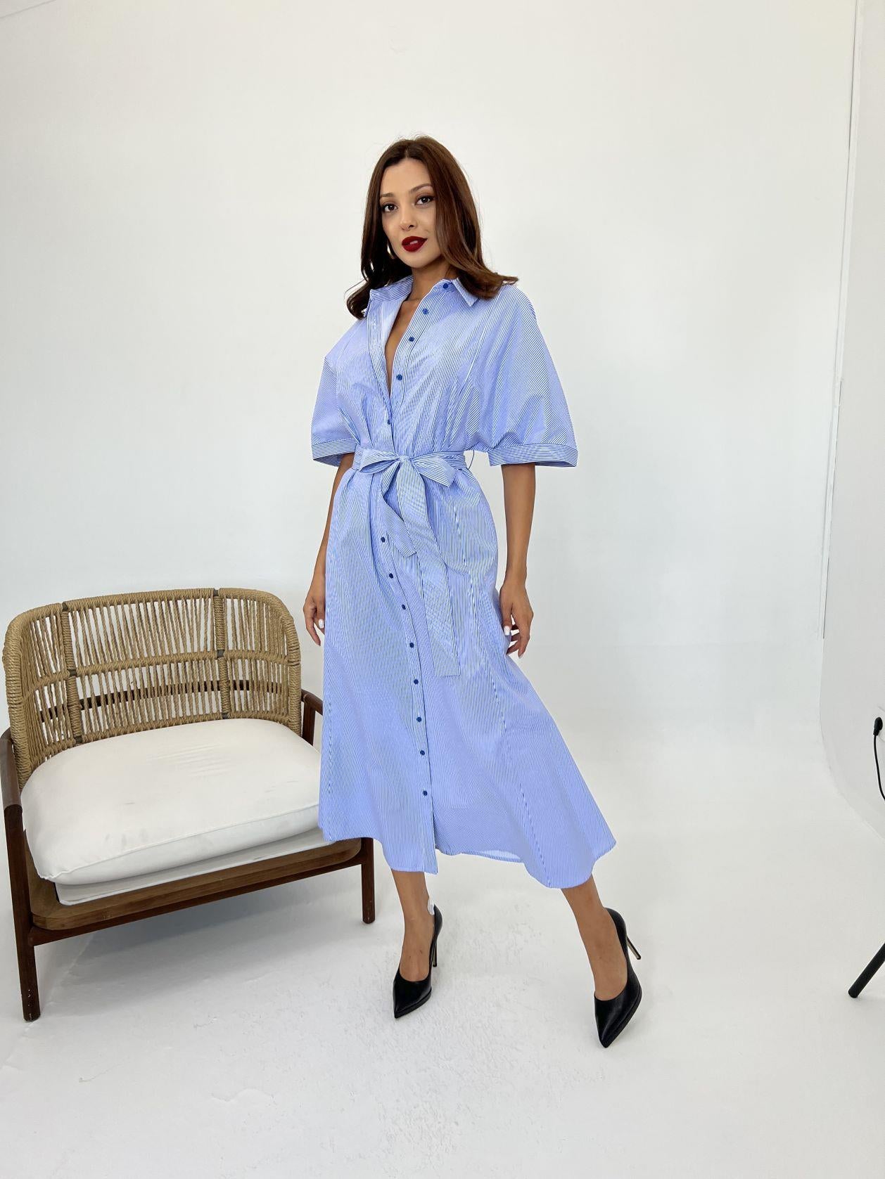 5318 ELBİSE-MAVİ BEYAZ ÇİZGİLİ
