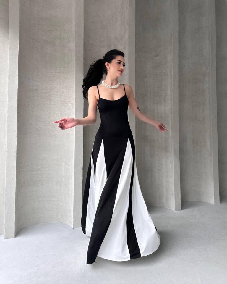 Askılı Beyaz Detaylı Maxı Kadın Elbise