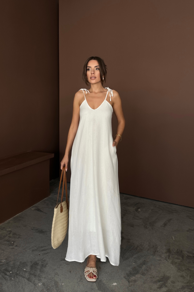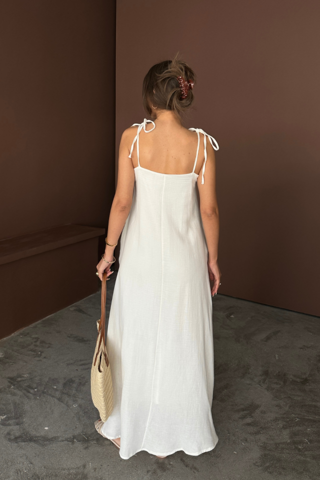 ASKILI UZUN SALAŞ MÜSLİN ELBİSE - Beyaz