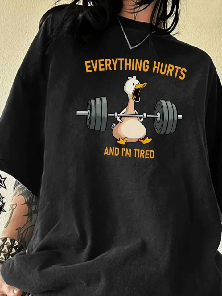 Baskılı Oversize Bisiklet Yaka T-shirt - Siyah
