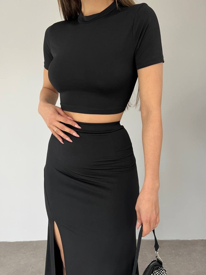 Eteği Yırtmaçlı Sandy Crop Takım -Siyah