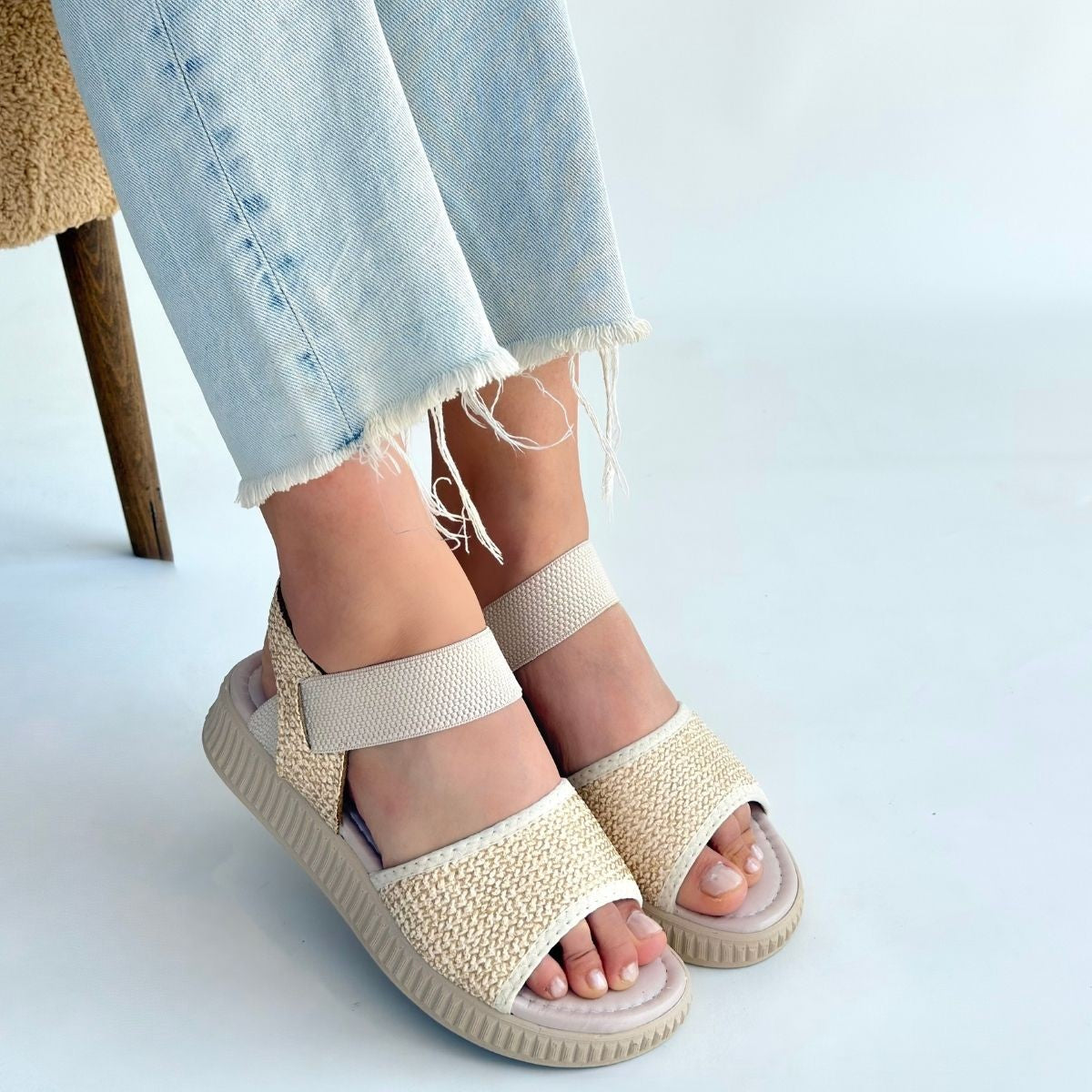 Jake Bej Hasır Cilt Sandalet