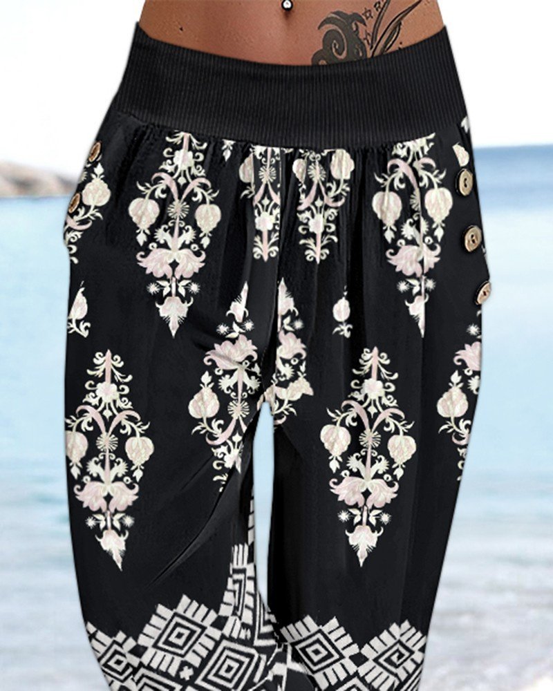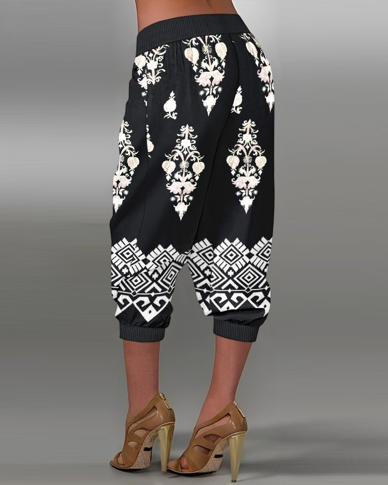 Kadın Beli Lastikli Etnik Desenli Kapri Süprem Pantolon
