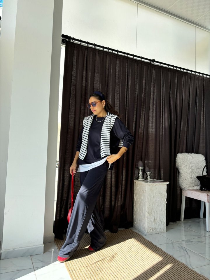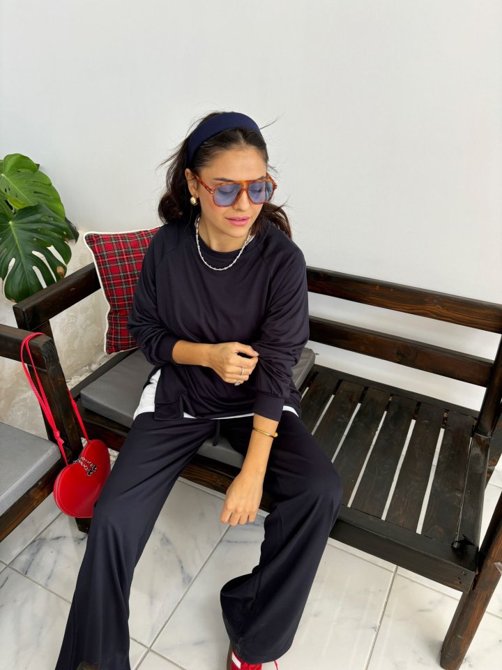 Kadın Bisiklet Yaka Atlet Detay Sweat Ve Ispanyol Paça Salaş Detay Pantolon Ikili Takım