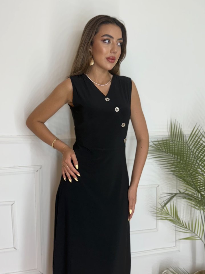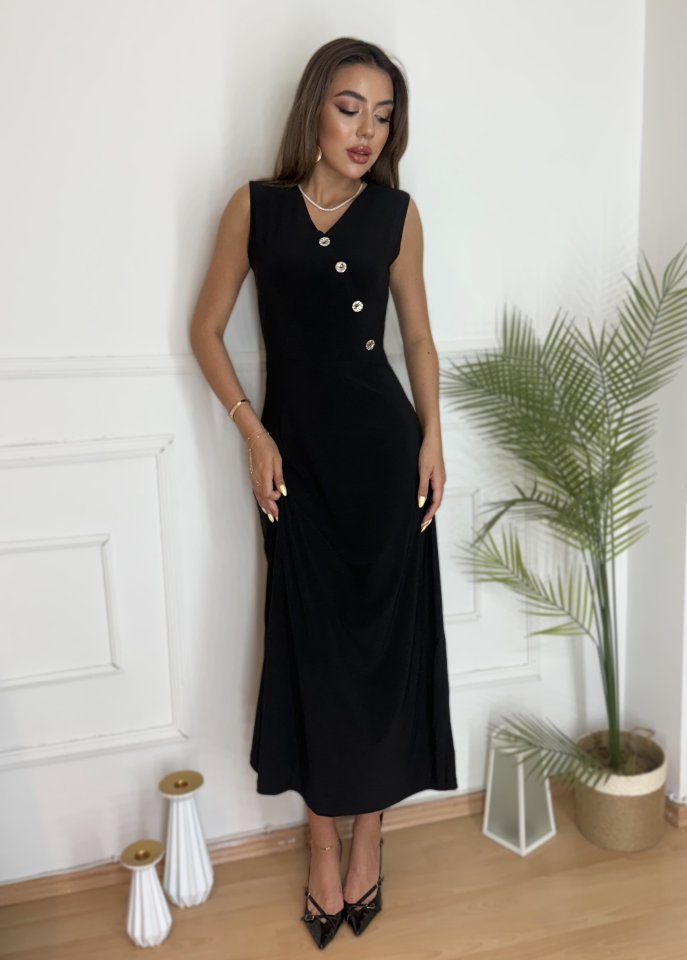Kadın Düğme Detay Kolsuz Maxi Boy Elbise