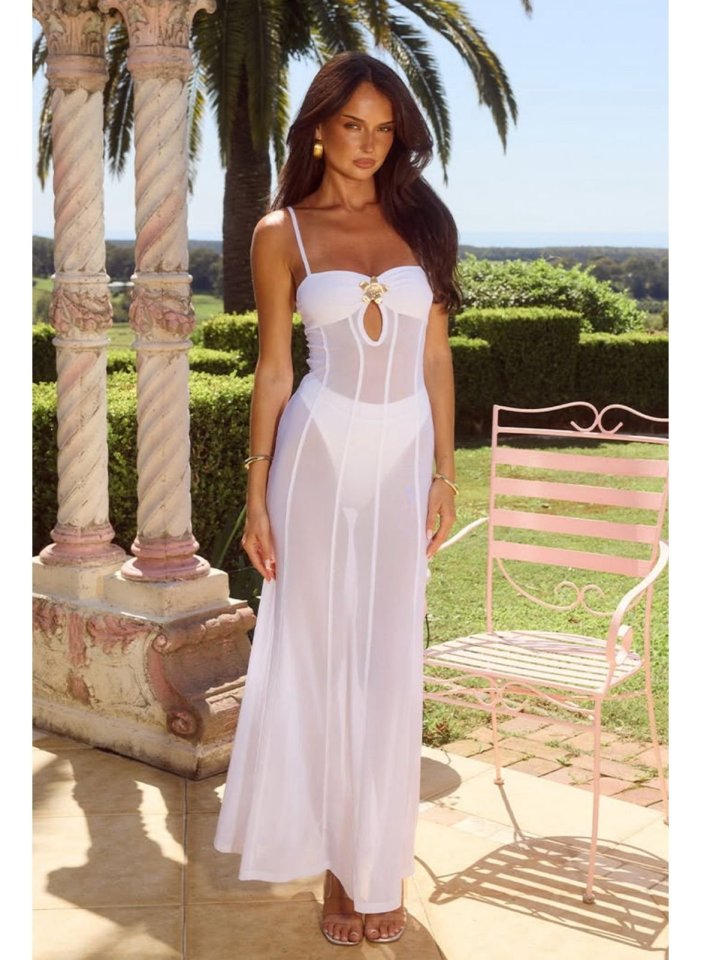 Kadın File Ve Sendy Kumaş Broş Detaylı Transparan Pareo