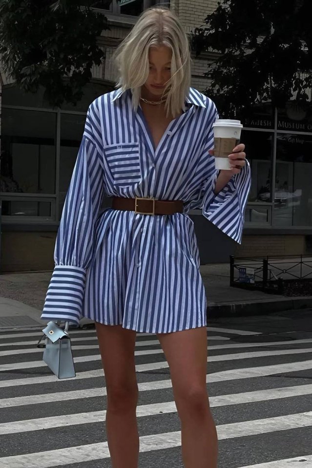 Kadın Gömlek -elbise çizgili Desen