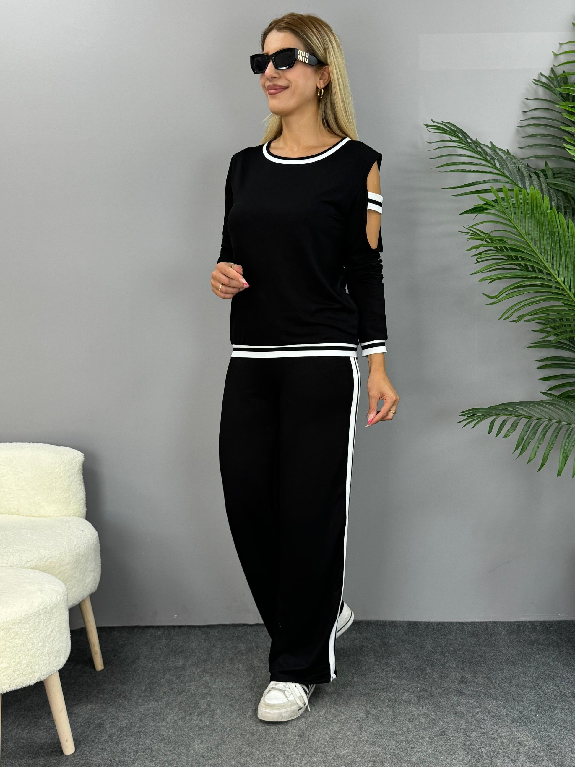 Kadın Iki Iplik Penye Kumaş Kol Detaylı Ribanalı Ikili Takım