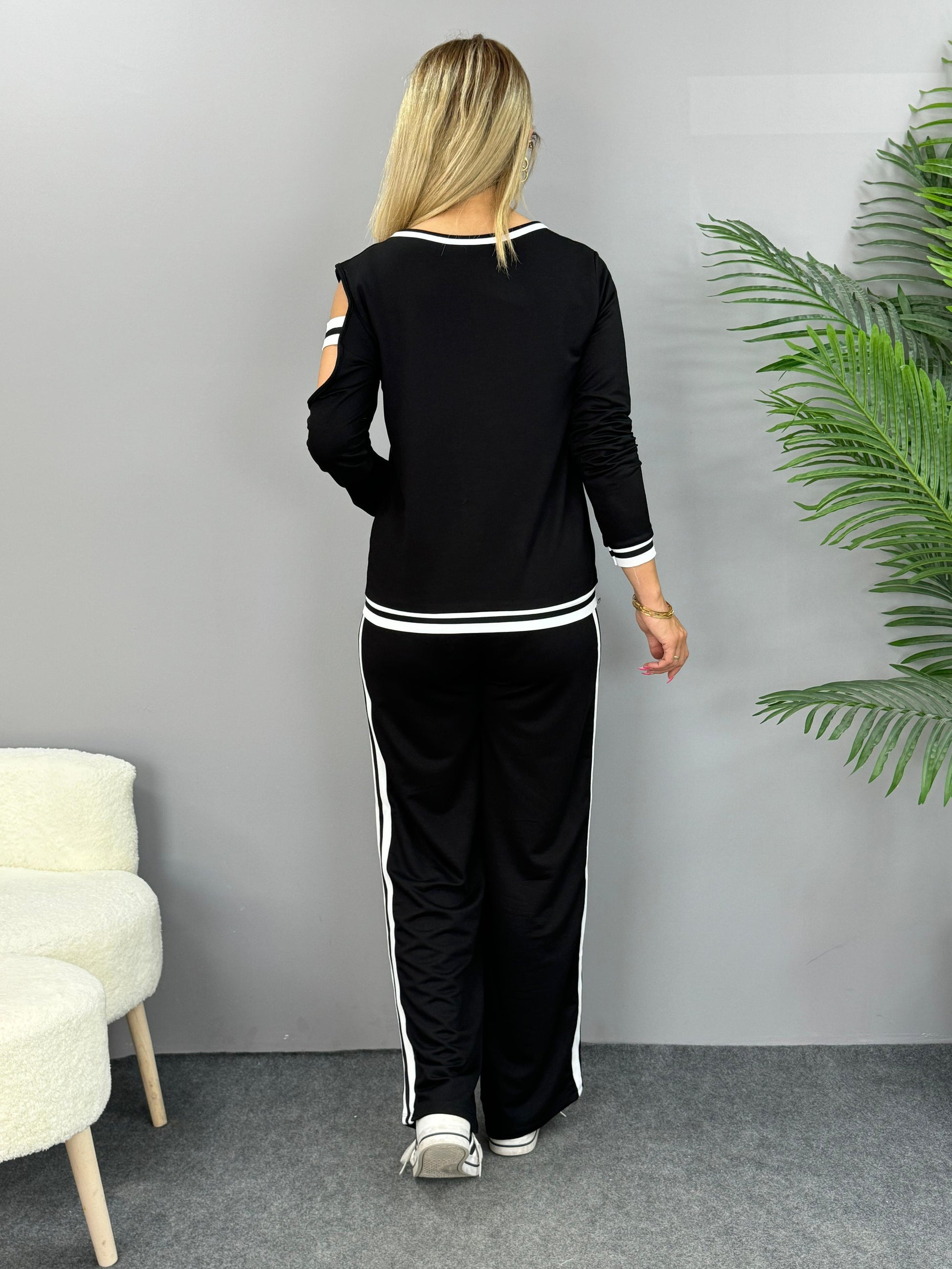 Kadın Iki Iplik Penye Kumaş Kol Detaylı Ribanalı Ikili Takım