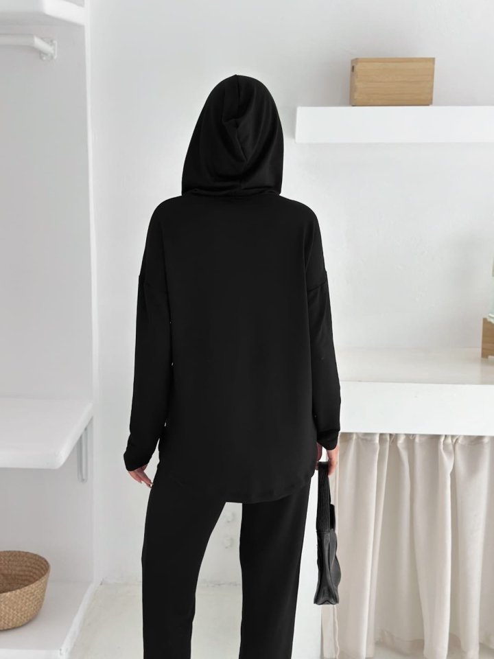 Kadın Kapşunlu Ve Atlet Detaylı Tunik Yüksek Bel Pantolunlu ıkılı Takım