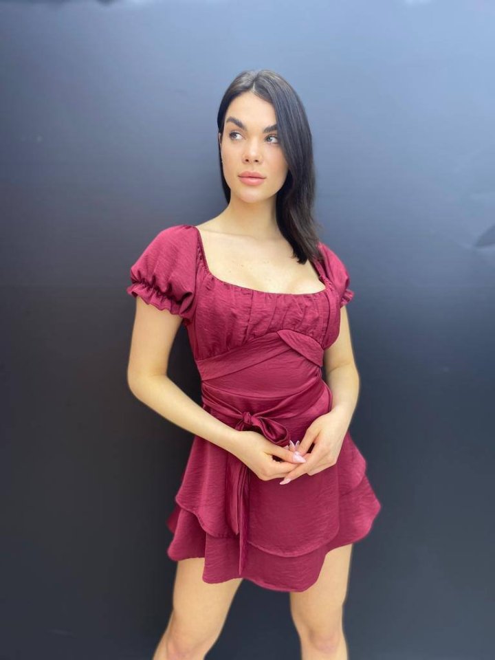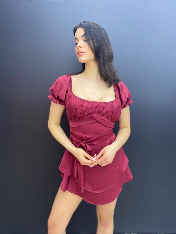 Kadın Kare Yaka Kuşak Detay Fırsat ürün Mini Elbise
