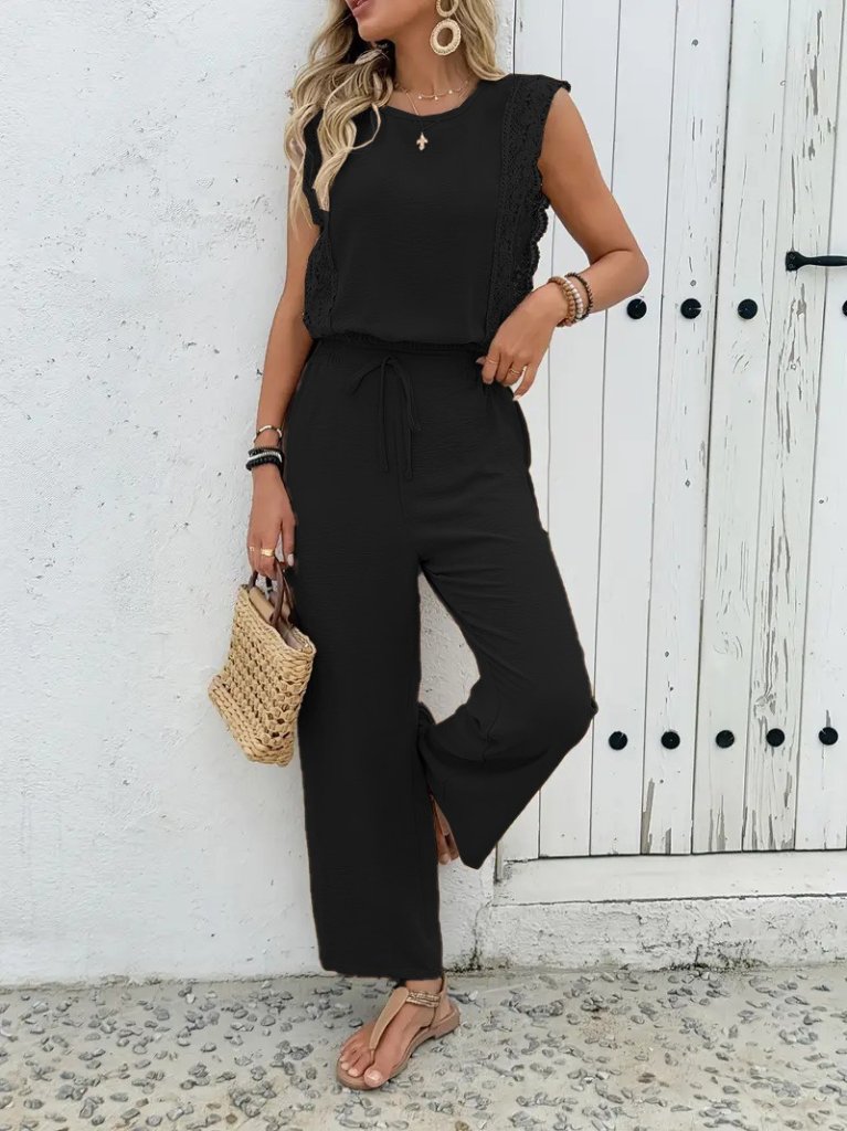 Kadın Kolsuz Bisiklet Yaka Aerobin Bluz Ve Bağcıklı Pantolon