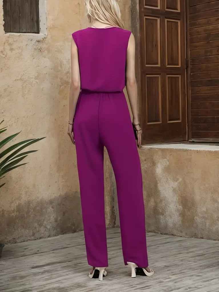 Kadın Kolsuz V Yakalı Aerobin Bluz Ve Belden Kuşaklı Pantolon Ikili Takım