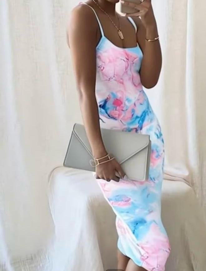 Kadın Omuz Askılı Dijital Baskılı Midi Boy Elbise