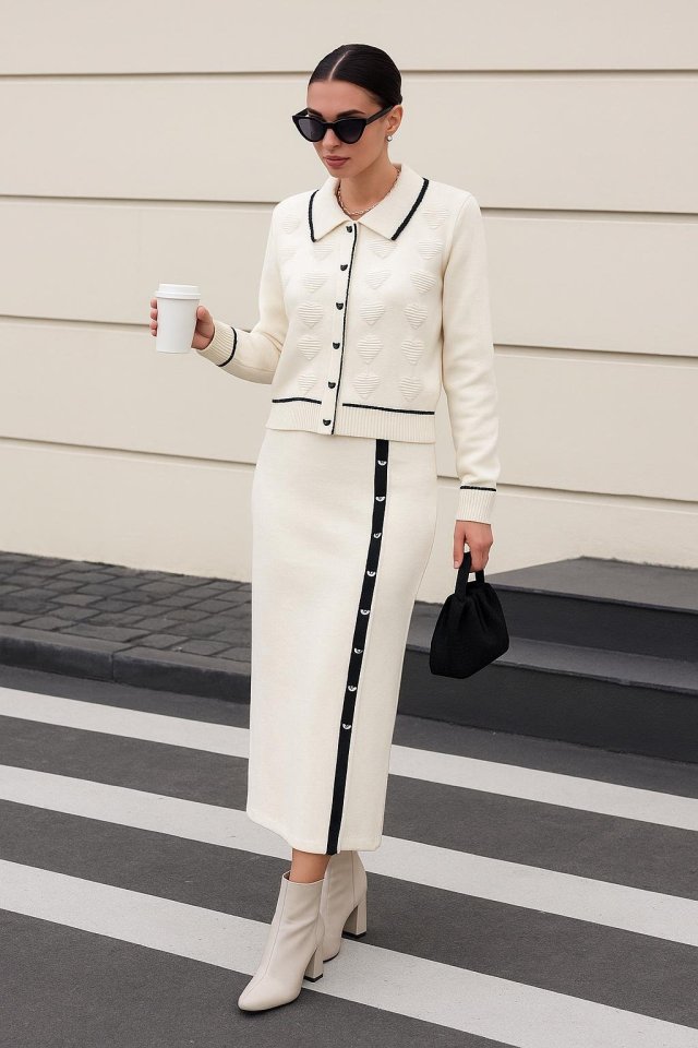 Kadın şerit Detay Ceket Ve Etek ıkılı Takım