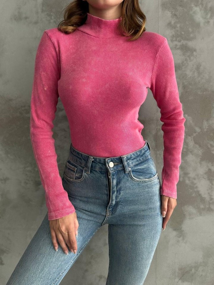Kadın Uzun Kollu Boğazlı Yaka Asit Yıkamalı Kaşkorse Kumaş Kazak