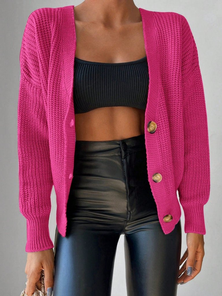 Kadın Uzun Kollu Düğme Detay Triko Bluz