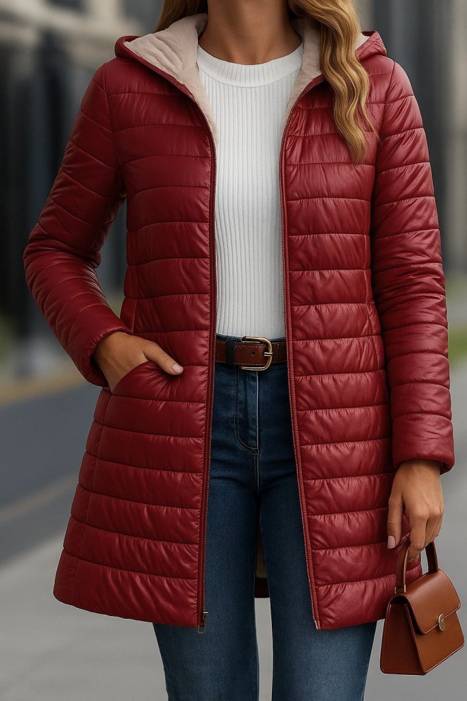 Kadın Uzun Kollu Kapşonlu Cep Detaylı Fermuarlı Orta Boy Mont