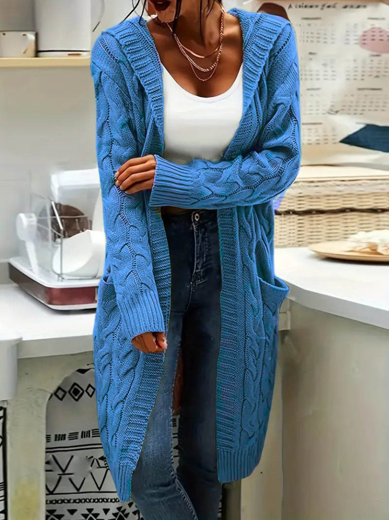 Kadın Uzun Kollu Kapşonlu önü Açık Cepli Midi Hırka