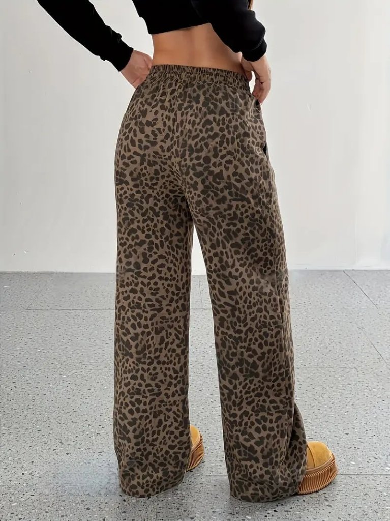 Kadın Yüksek Bel Lastikli Bağcıklı Geniş Kesim Iki Iplik Pantolon