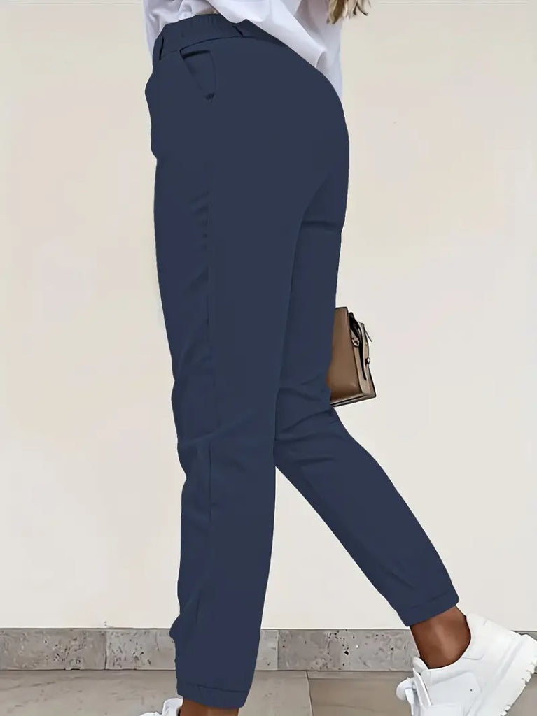 Kadın Yüksek Bel önden Düğmeli Cepli Bilek Lastik Detay Atlas Pantolon