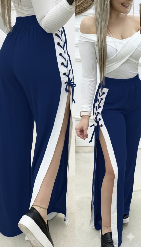Kadın Yüksek Bel Yandan çapraz Bağcıklı Yırtmaçlı Viskon Iki Iplik Pantolon