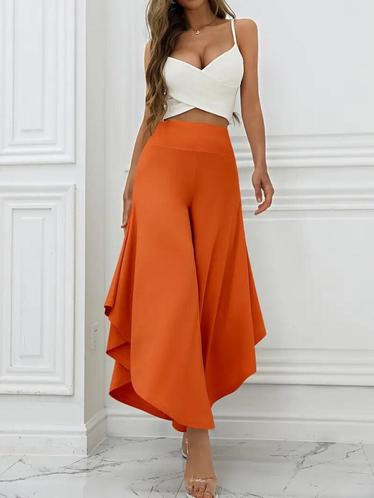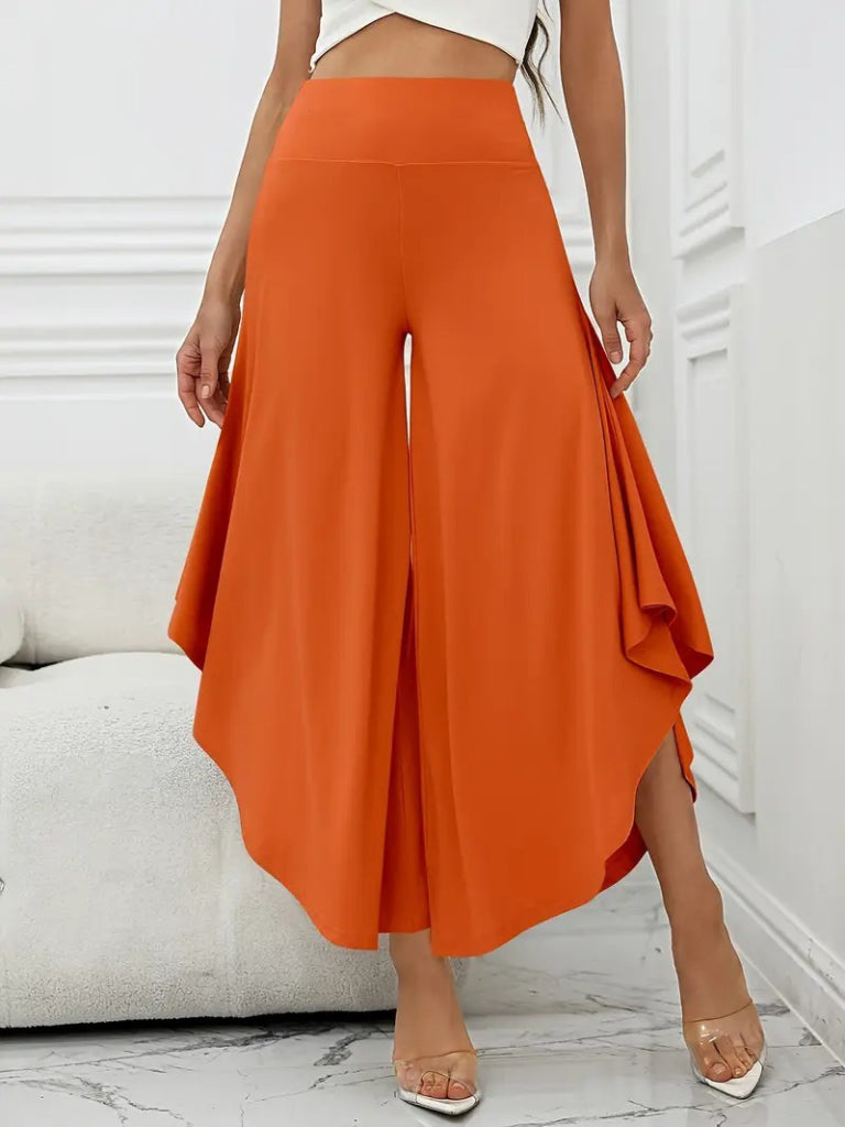 Kadın Yüksek Belli Geniş Paçalı Yanlardan Açık Sandy Pantolon