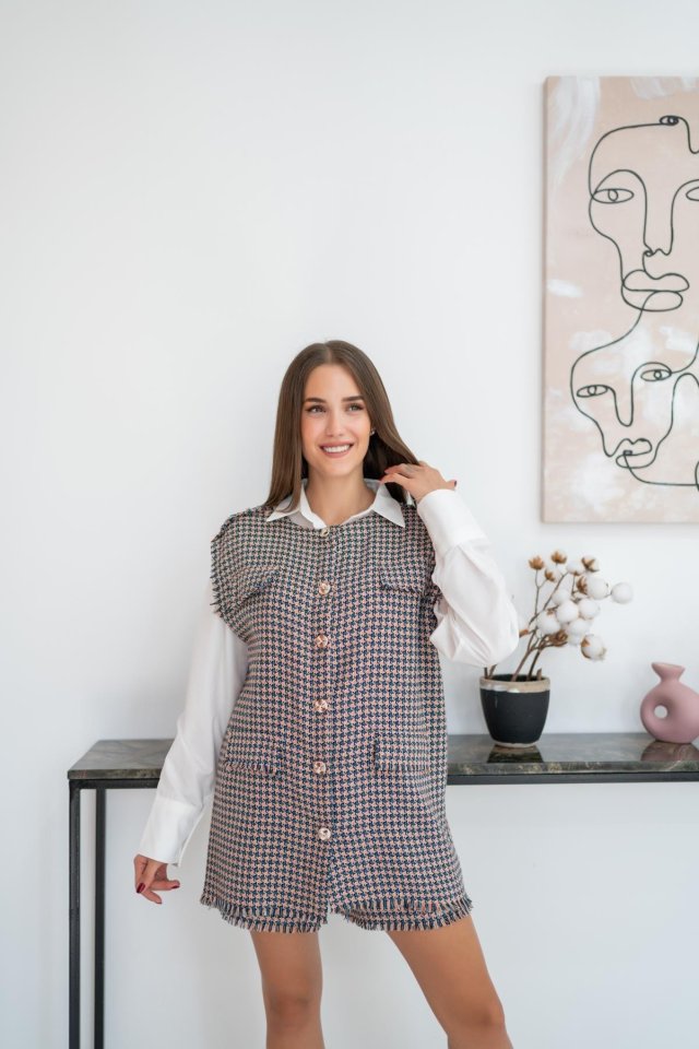 Mavi Kazayağı Desenli Yelek Ve Şort Takım