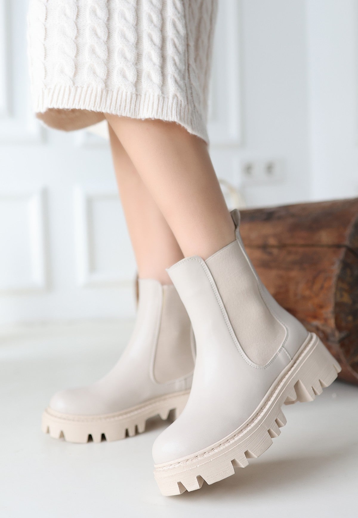Ninle Bej Cilt Topuklu Bot