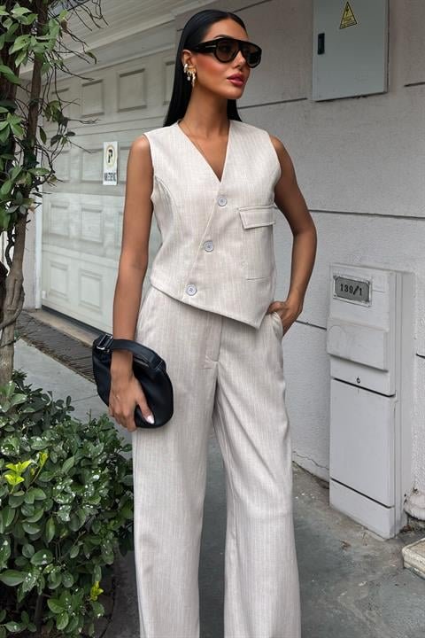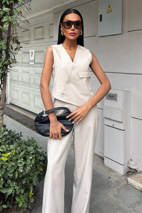 Yeleği Çapraz Detay Düğmeli Cepli Yelekli Takım 10150