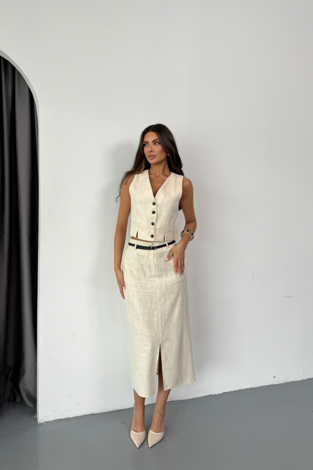 YELEK-ÖNDEN YIRTMAÇLI ETEK TK ŞANTUK KETEN - Ham